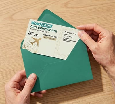With a WowFare Gift Card, every trip starts with a smile. Surprise your loved ones with the perfect travel gift, valid on any airline, anywhere.